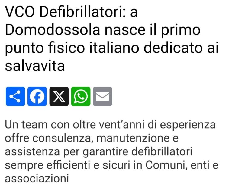 Fondata a Domodossola, VCO Defibrillatori si impegna per progetti di cardio-protezione. Siamo un'azienda unica in Italia, con un punto fisico dedicato alla vendita, assistenza e manutenzione di defibrillatori salvavita. Il nostro team di esperti offre un supporto completo e professionale.